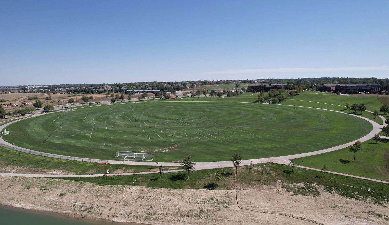 Regional 205-acre park with soccer & softball fields, disc golf, a playground, pavilions & trail.